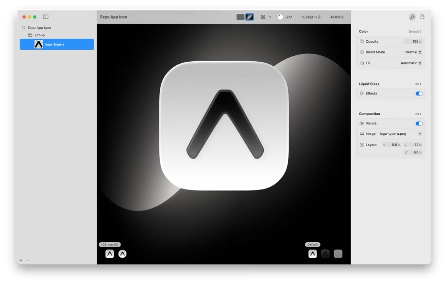 Expo SDK 54, iOS 26’nın zarif Liquid Glass simgelerini destekliyor. Bu simgeleri oluşturmak için macOS’ta çalışan Icon Composer uygulamasını kullanabilirsiniz. Uygulama, .icon