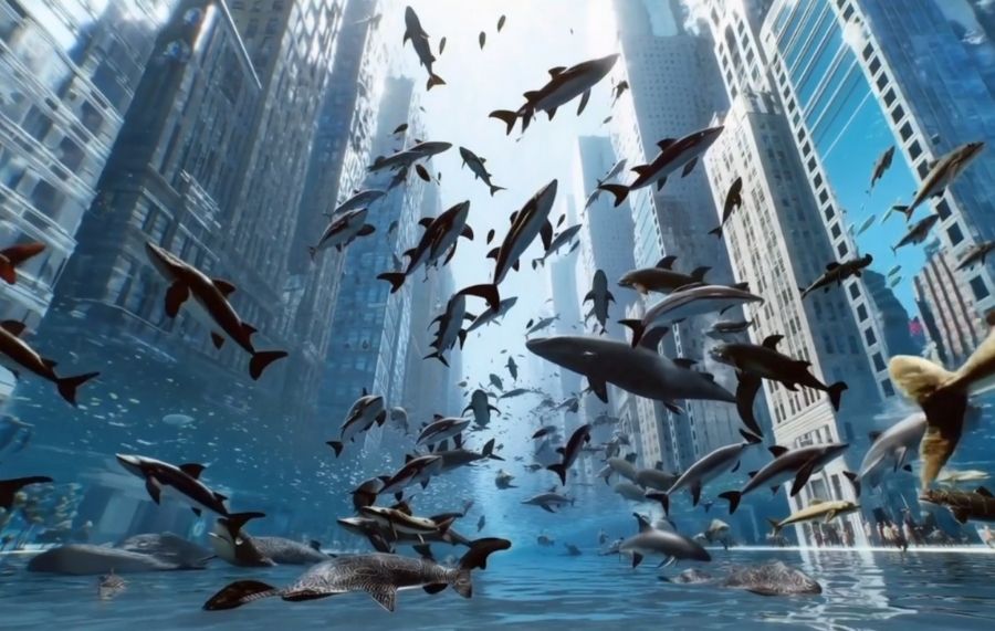 Video Promptu: New York Şehri'nin Atlantis gibi sular altında olduğu bir durumu düşünün. Balıklar, balinalar, deniz kaplumbağaları ve köpekbalıkları New York'un sokaklarında yüzüyor.