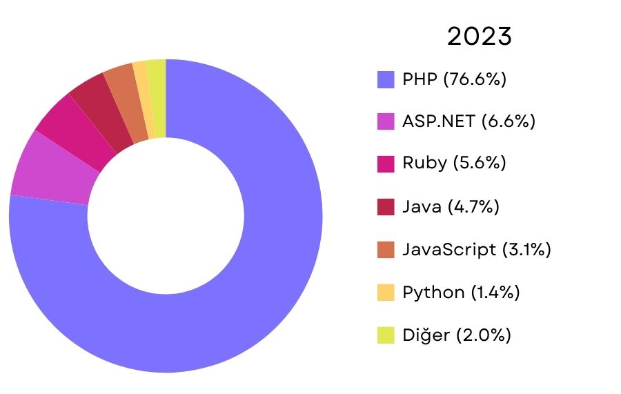 PHP dilinin popülerliği zaman içinde artmaya devam ediyor gibi görünüyor. W3Techs'in Ağustos 2023 raporuna göre, tüm web sitelerinin %76.6'si PHP'yi tercih ediyor. 2022'deki %77.2'ye kıyasla hafif bir düşüş olsa da, PHP'nin hala çoğu sunucu tarafı dilinde lider olduğunu gösteriyor. En popüler sürümler sırasıyla PHP 7.4 (%50,3), PHP 7.3 (%24,7) ve PHP 5.6 (%12,8) iken, geriye kalan sürümler toplamda %12,2'yi oluşturuyor.